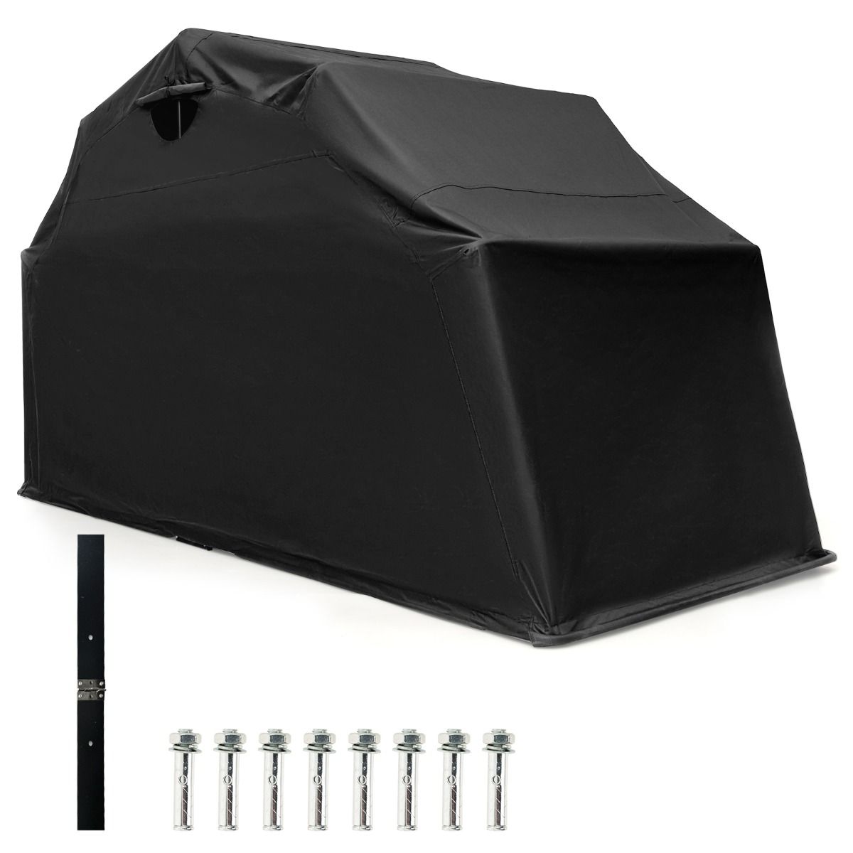 L'abri moto peut servir de local à vélos ou à bois de chauffage, répondant à tous vos besoins de stockage. Soutenu par une structure en métal thermolaqué, il n'est pas facile à rouiller. Il y a des boulons d'expansion pour la fixation, assurant une structure sûre et robuste. Il adopte une housse en tissu Oxford 600D épaissi avec des revêtements en PVC et polyuréthane, qui offrent une résistance contre la lumière du soleil, la pluie, la poussière et la neige. Les fenêtres latérales en maille avec rabats enroulables sont conçues pour faciliter l’aération.
